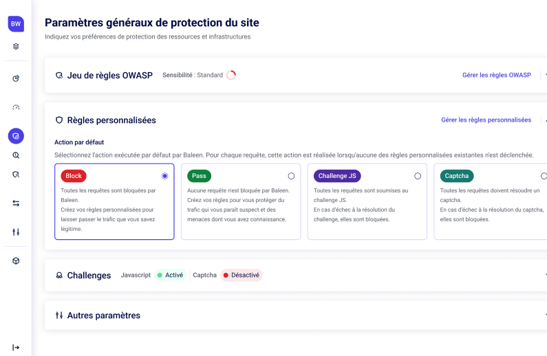 Cyberattaques, pics de trafic lors du Black Friday ou suite à une campagne média : Baleen protège votre site e-commerce pour garantir des performances optimales et une sécurité sans faille, vous permettant de maximiser votre chiffre d’affaires en toute sérénité.